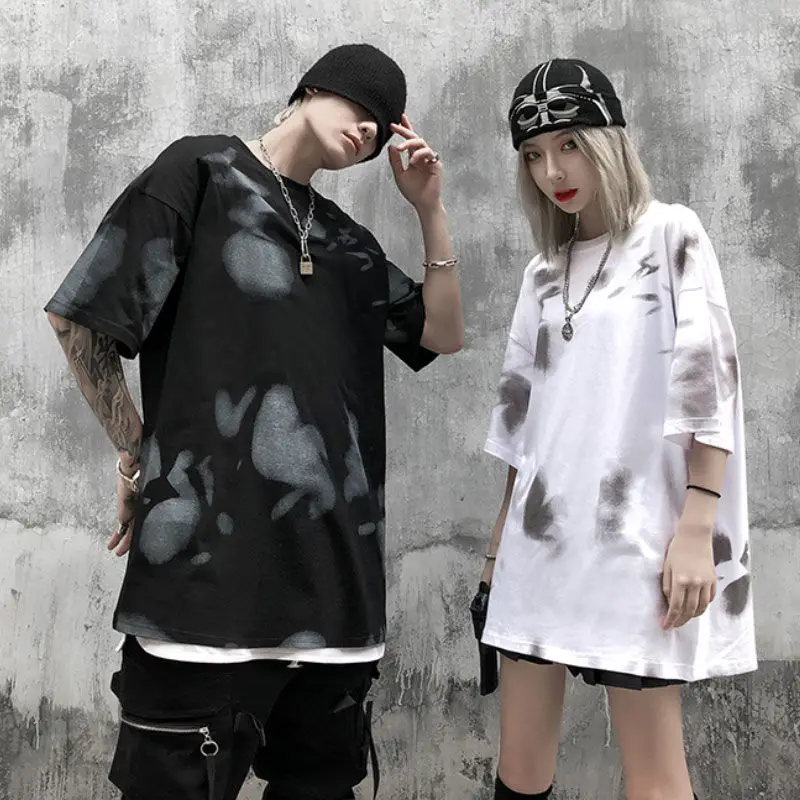 Женская уличная футболка NiceMix, пуловер оверсайз с принтом в виде галстука, футболки с градиентом, повседневные топы с короткими рукавами в стиле хип-хоп