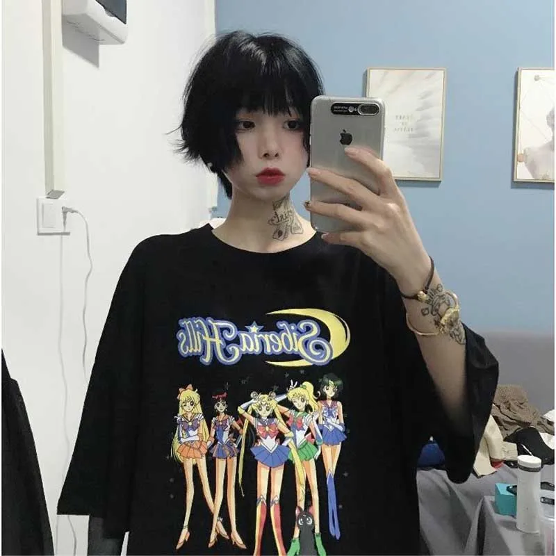 NiceMix летние топы Сейлор Мун мультфильм буквы печати Футболка Повседневная Уличная с коротким рукавом хлопковая Футболка женская одежда тройники