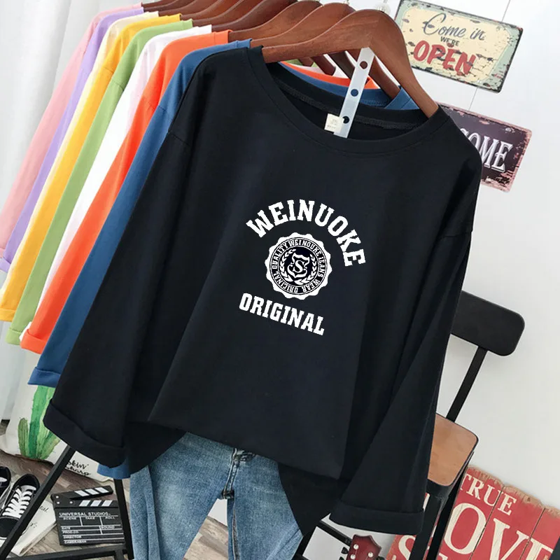 DONAMOL размера плюс Весенняя мода повседневная для женщин футболка с длинным рукавом свободная 100% хлопок Принт унисекс Одежда для влюбленных Топ пуловер