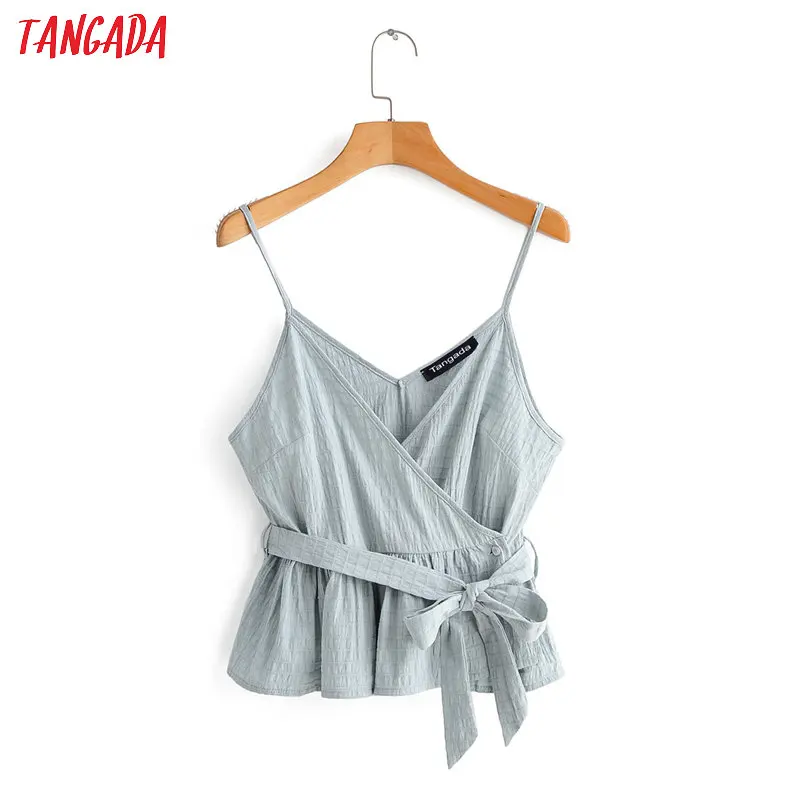 Женская элегантная блузка без рукавов Tangada, летняя блузка на бретелях с оборками, шикарные женские топы, SY93