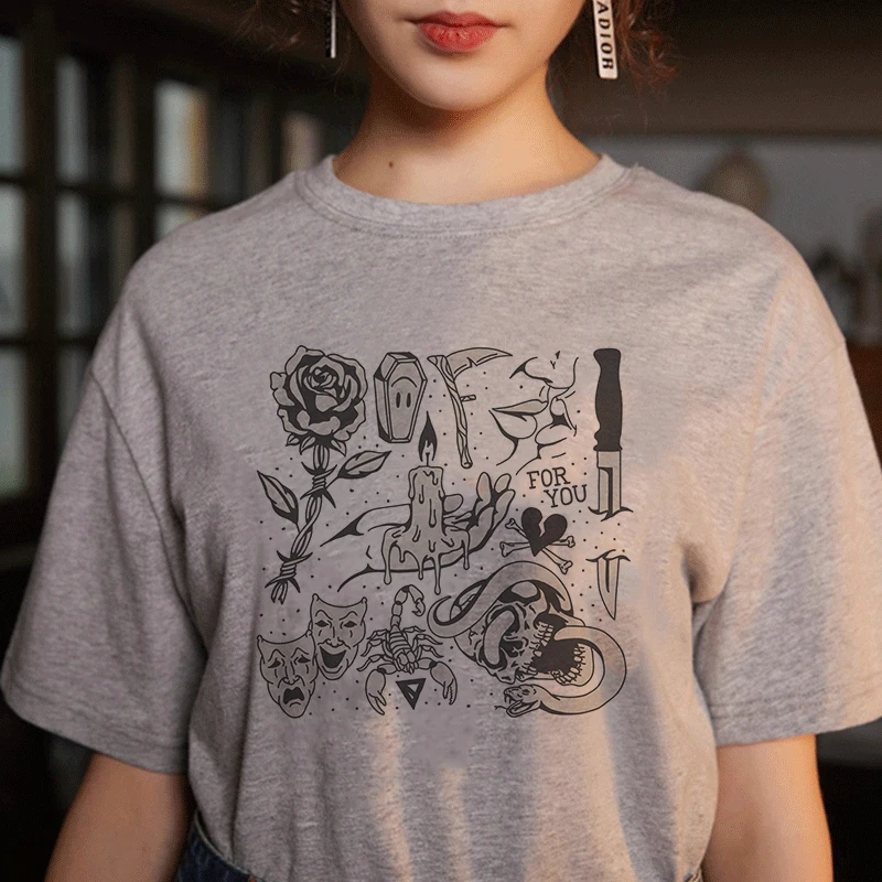 Винтажная забавная модная футболка с принтом, пародия, серия топов, индивидуальная Мода Harajuku, летняя серая Эстетическая Женская одежда с кр...