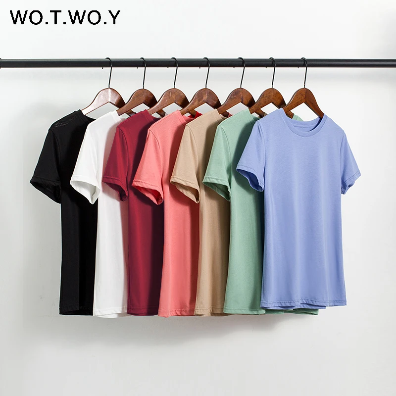 Женская футболка с коротким рукавом WOTWOY, Базовая Трикотажная хлопковая футболка 7 цветов, 2020