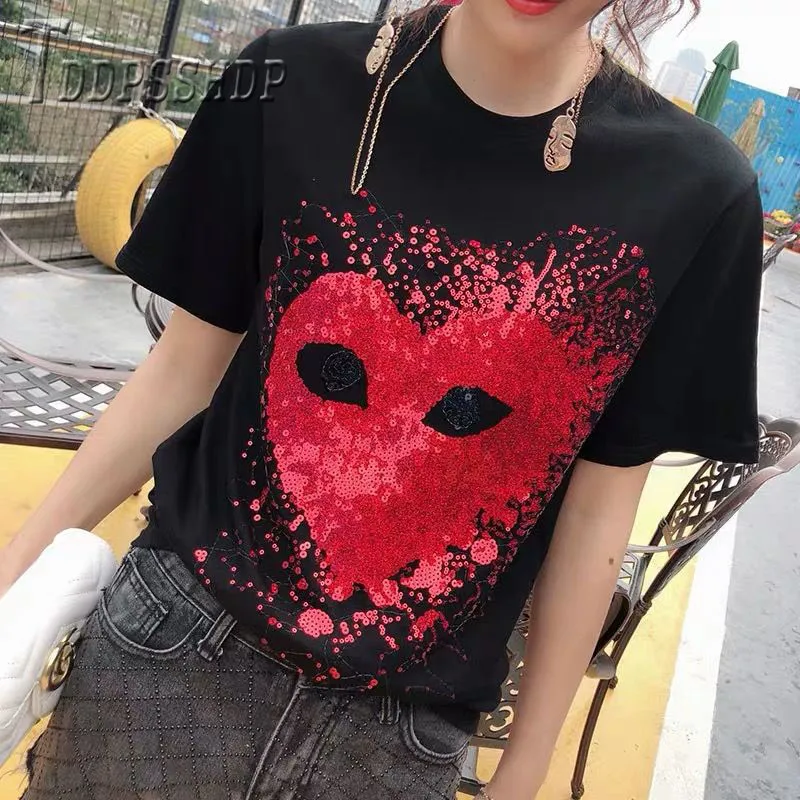 2019 черно-белая красная Золотая маска с блестками Декор женская футболка летние женские футболки