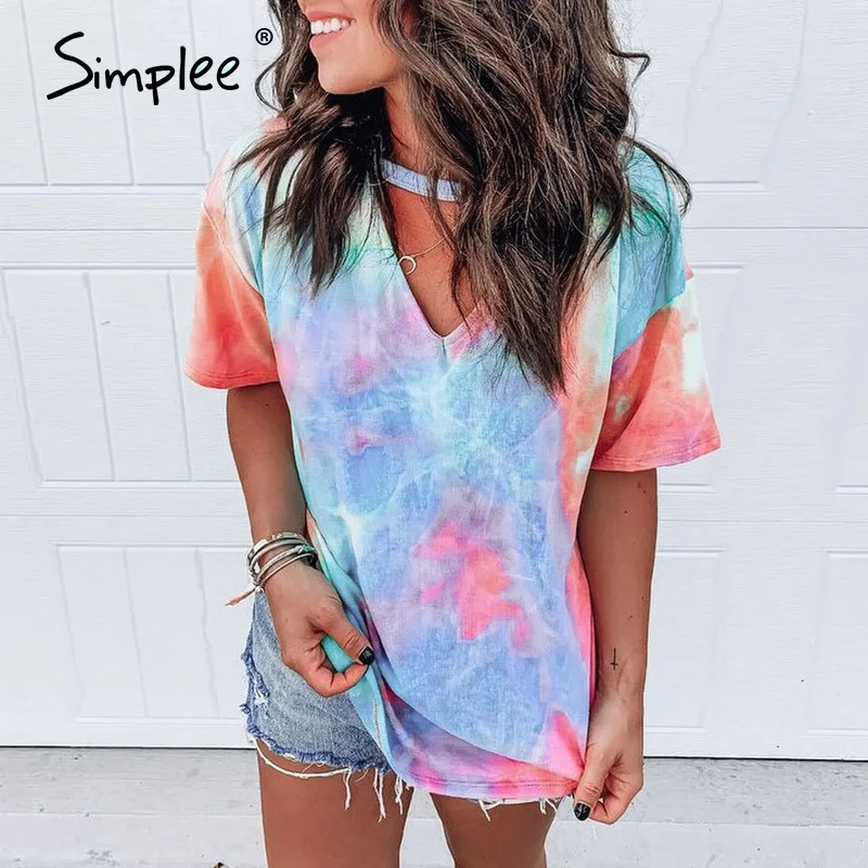 Футболка с принтом Simplee, женская спортивная футболка с коротким рукавом и треугольным вырезом, летняя одежда для дома, 2020