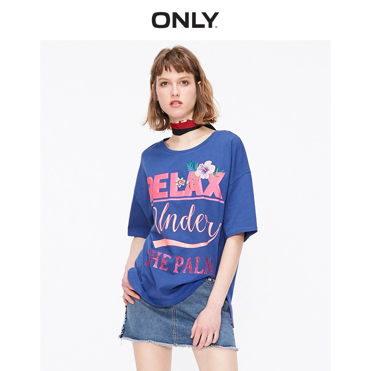 Женская свободная футболка средней длины с буквенным принтом, с разрезом сбоку, с короткими рукавами | 119201518