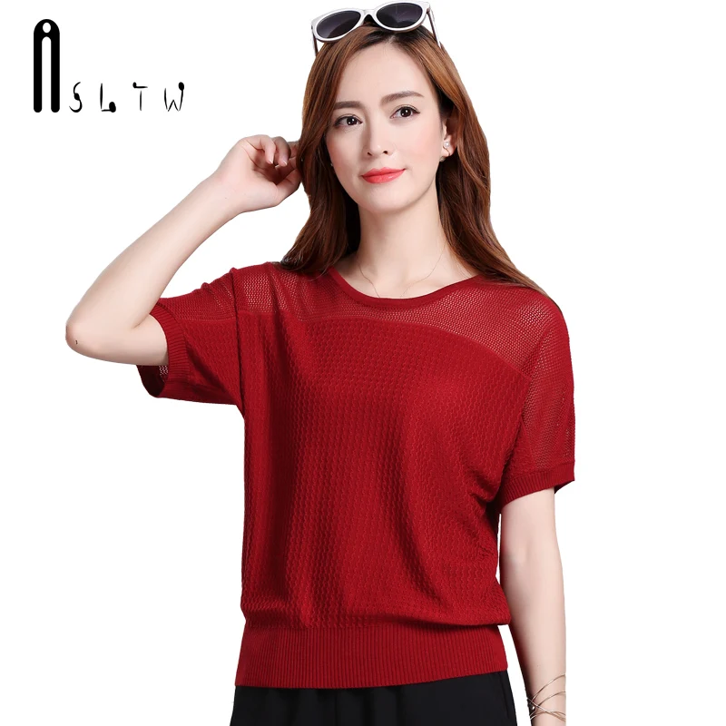 ASLTW 5 цветов Женская летняя футболка 2018 Новая мода полый круглый вырез футболки для женщин короткий рукав летучая мышь тонкие женские футбол...