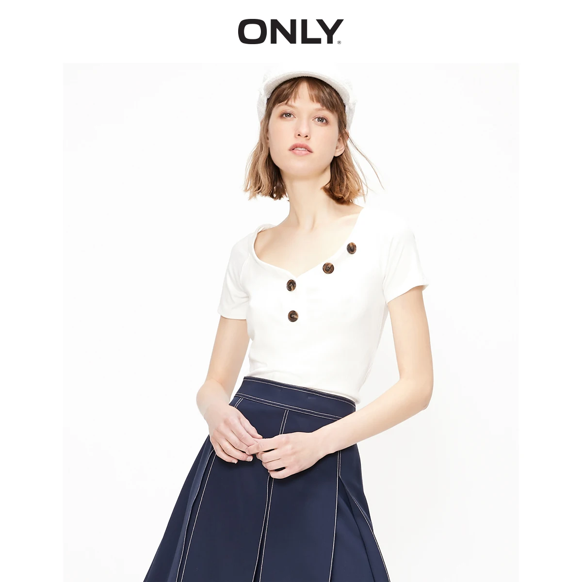 Только Женская облегающая эластичная трикотажная футболка с коротким рукавом и v-образным вырезом | 119201587