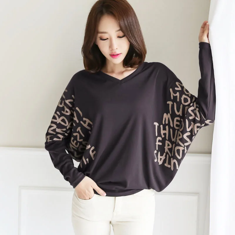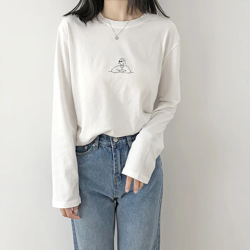 Круглый вырез длинный рукав женщины футболка 2019 осень мода повседневные женские свободные пуловеры