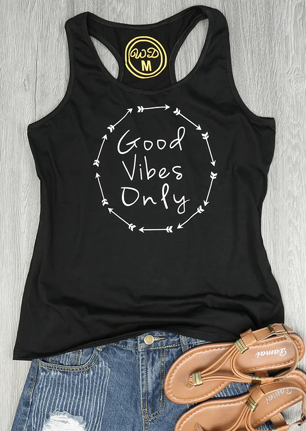 Модные женские туфли топы Лето топы без рукавов Good Vibes Only стрелка печати Танк Черный Женский Танк Повседневное женские футболки