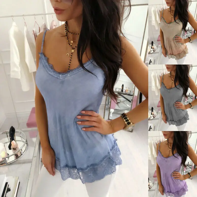 2019 женский кружевной жилет без рукавов Свободный камзол майка с треугольным вырезом блузка слинг футболка
