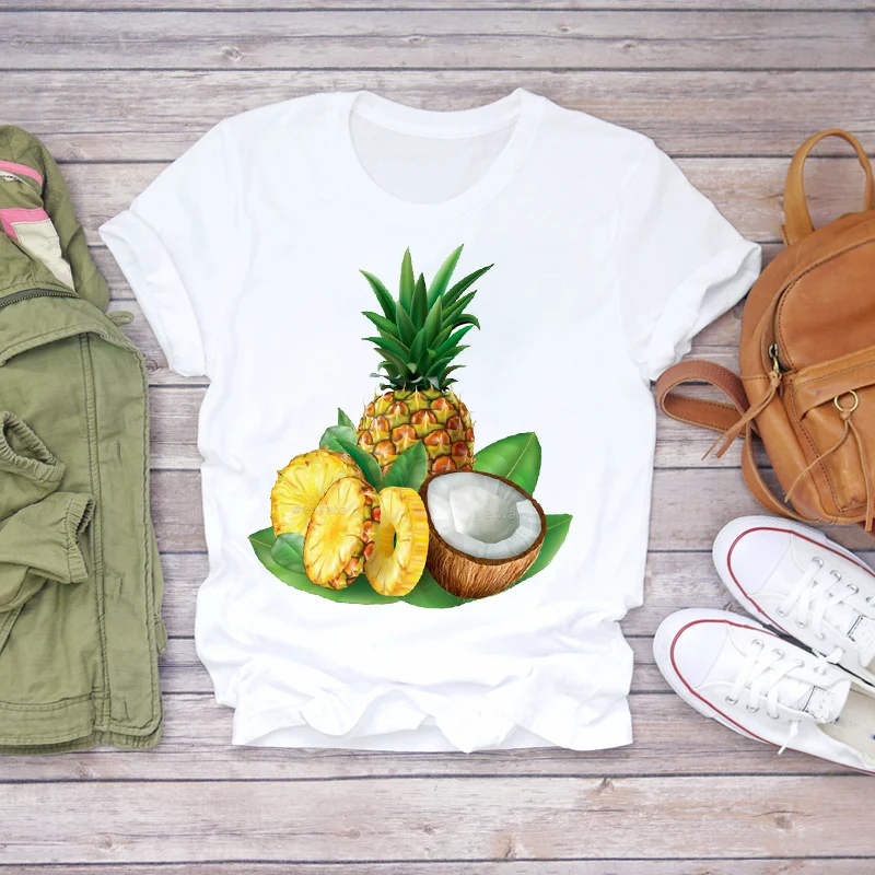 Женская летняя футболка с принтом ананаса и фруктов, 90 s, Camisas Mujer, футболка, женская футболка с графическим принтом, 2020