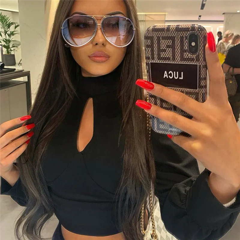 Модная женская черная белая открытая футболка с длинным рукавом и стоячим воротником, осень 2020, женский эластичный облегающий укороченный топ, женская уличная одежда