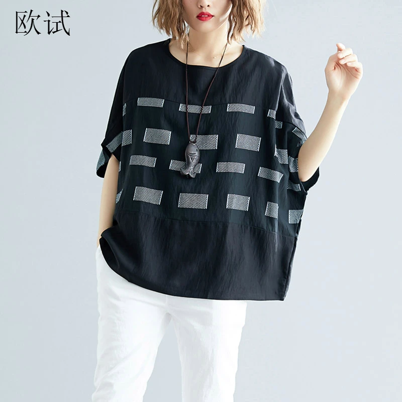 Клетчатая модная футболка размера плюс, Графические футболки для женщин, хлопковая Футболка 2019, летняя футболка, женские футболки, повседне...