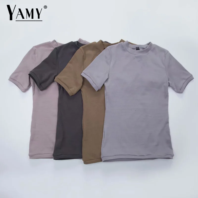 Женская трикотажная футболка с бриллиантами, Элегантные вязаные футболки с круглым вырезом и коротким рукавом, 2019