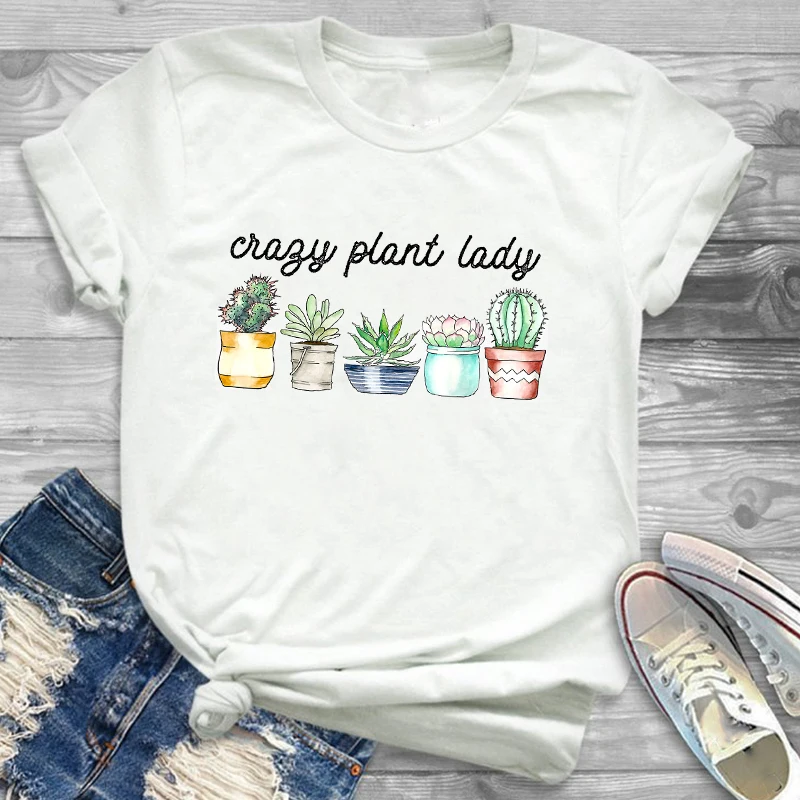 Женская Мода Crazy Plant Lady с принтом кактуса Женская графическая футболка уличная Camisas футболка футболки