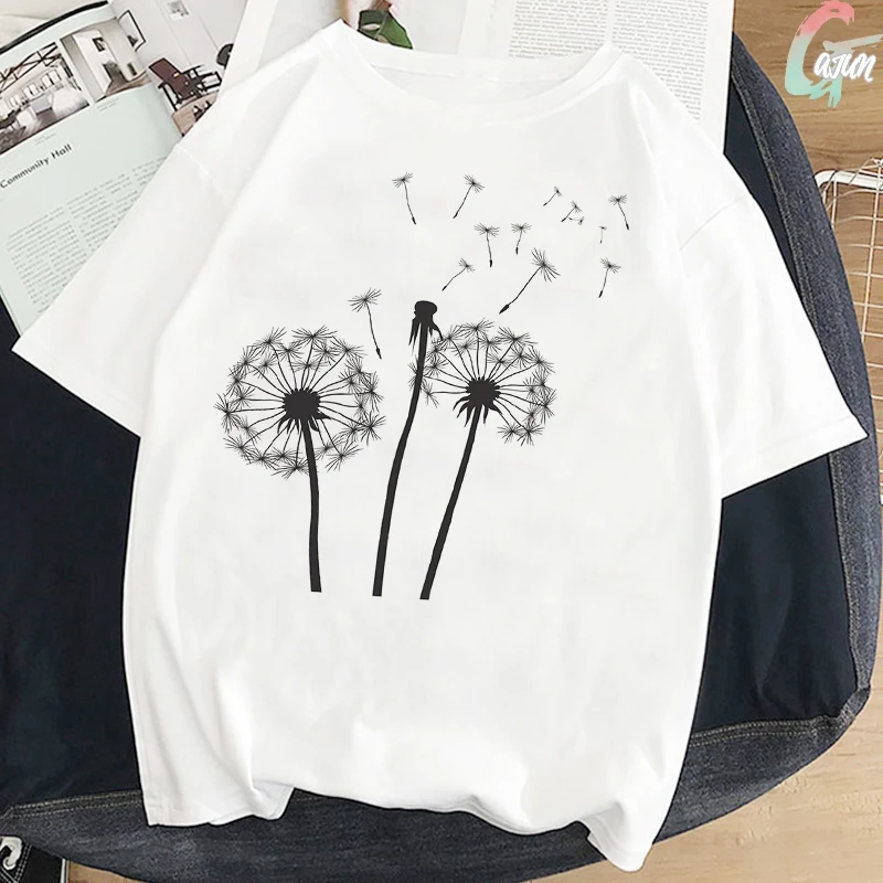 Женская футболка Ulzzang, Повседневная футболка с принтом, букет одуванчиков, лето 2020