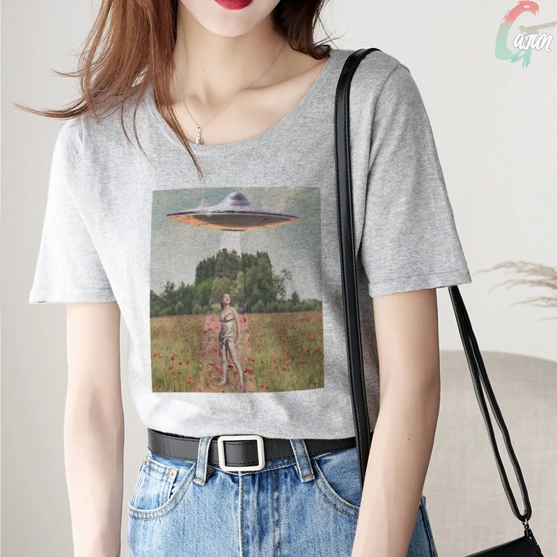 Летняя Новинка, пришелец Харадзюку, футболка с О-образным вырезом, панк стиль, серая футболка, с внеземным принтом, Повседневная Уличная оде...