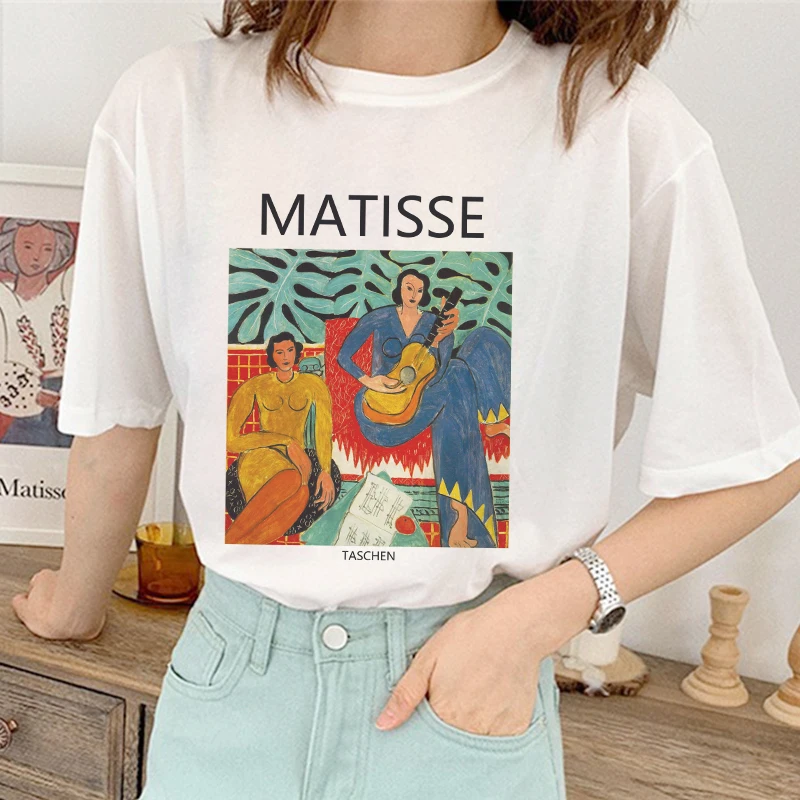 Женская футболка в стиле Харадзюку Matisse, Повседневная футболка с принтом из мультфильма «Игра на гитаре», футболка с буквенным принтом