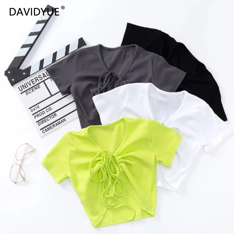 Новинка; Сезон весна-лето; Повседневная хлопковая короткая однотонная одежда с v-образным вырезом из плотной шерстяной ткани; CRRIFLZ
