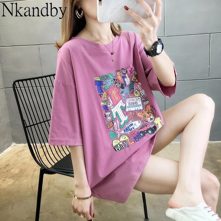 Женская футболка большого размера с мультяшным принтом, Новое поступление 2020, летняя повседневная свободная футболка с коротким рукавом, ф...