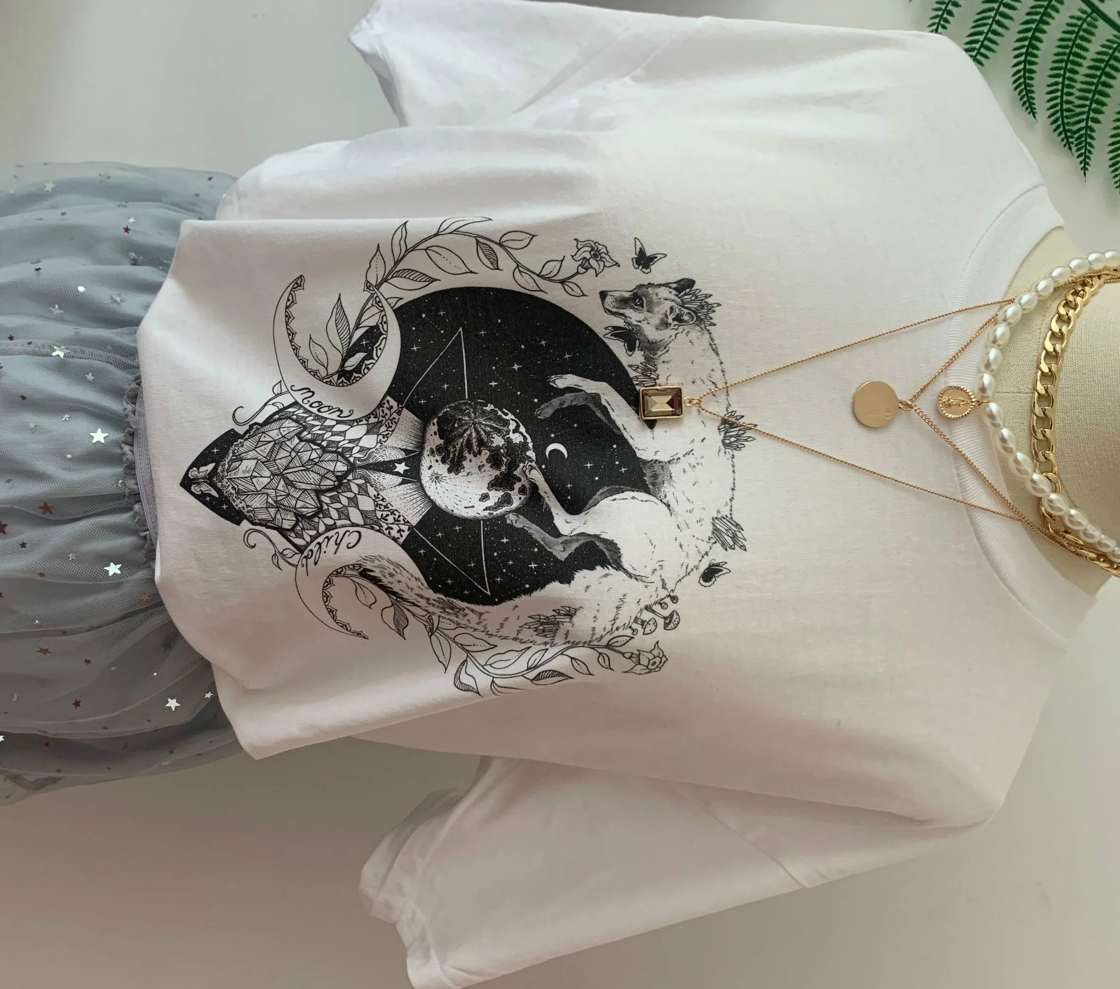 Fashion Show-JF Moon Child, футболка с принтом лисы, Луны и кристаллов, женская футболка с коротким рукавом, хлопок, Сейлор Мун, модная одежда в уличном с...