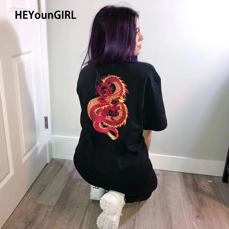 HEYounGIRL футболка большого размера с принтом дракона Женская Повседневная Свободная футболка Harajuku женская модная футболка с коротким рукавом лето 2020