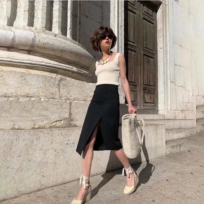 Женский винтажный трикотажный топ на бретельках, белый и черный Повседневный Топ на бретельках, вечерняя блуза, лето 2020