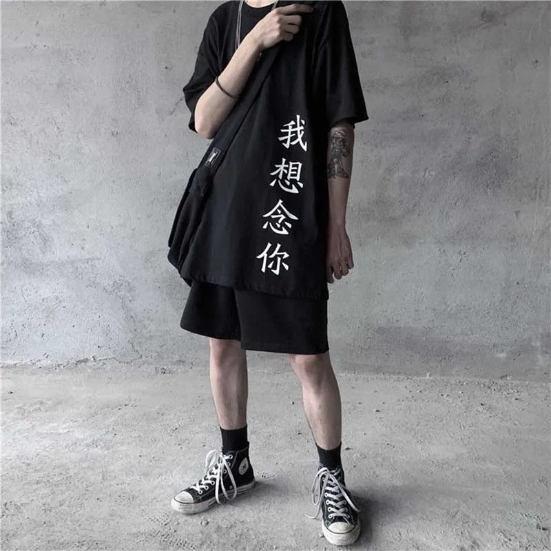 Модный комплект из двух частей с принтом Повседневное Harajuku Для женщин футболка летние шорты с длинными рукавами с О-образным вырезом Футболка Повседневная одежда Топ женские хлопковые футболки