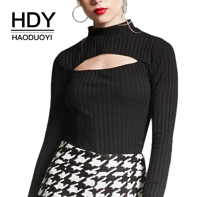 HDY Haoduoyi бренд 2018 Женский, черный/бордовый привлекательные футболки макет средства ухода за кожей шеи вырезать повседневное Топы корректиру...