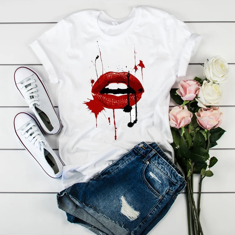 Женские футболки с 3D рисунком губ, повседневные милые модные футболки с коротким рукавом, женские футболки с графикой