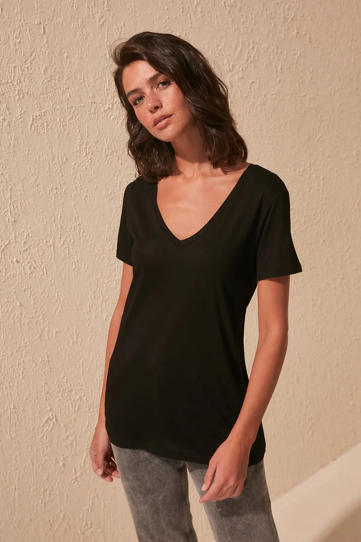 Классические Трикотажные футболки из смешанной вискозы с v-образным вырезом TWOSS20TS0131