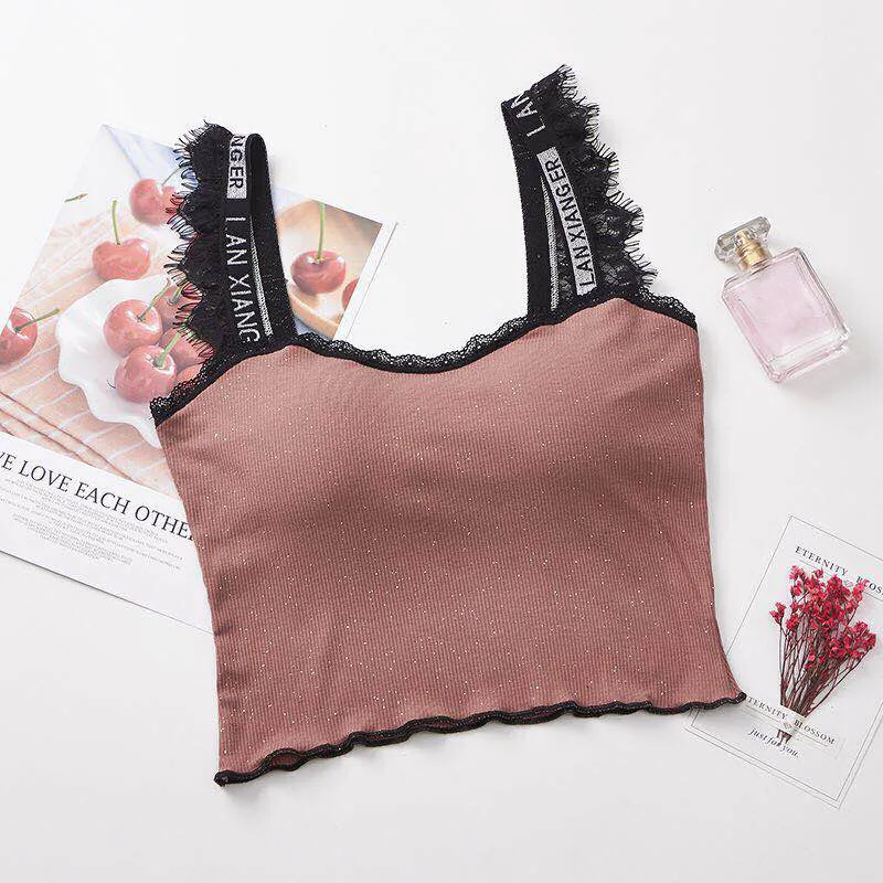 Съемная Грудь Pad Жилет кружевное пэтворк однотонное Блузы Tanks camis Sexy V образным вырезом красота назад регулируемый плечевой ремень женский ...