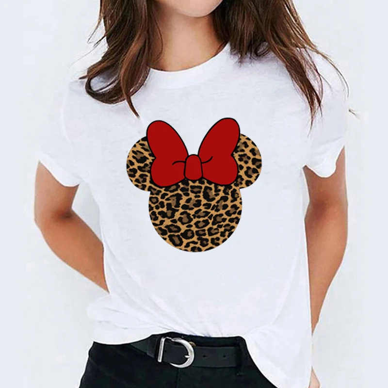 Женская футболка с леопардовым принтом, бантом и ушками, с милым принтом, модная женская футболка с мультяшным принтом, женские футболки с г...