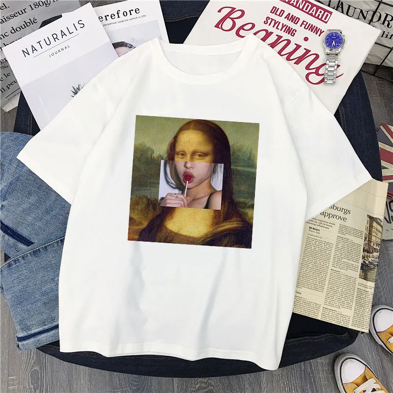 Ulzzang Mona Lisa мультфильм Забавный модный принт футболка пародия Личность Мода Harajuku Новая Летняя Повседневная Tumblr женская одежда