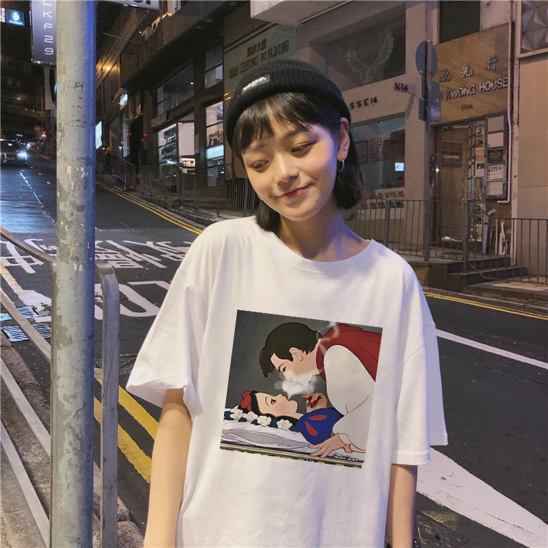 Fck You панк Белоснежка Ретро Мультфильм Харадзюку улззанг женские Топы Футболка с круглым вырезом Забавный принт Повседневная короткий рука...