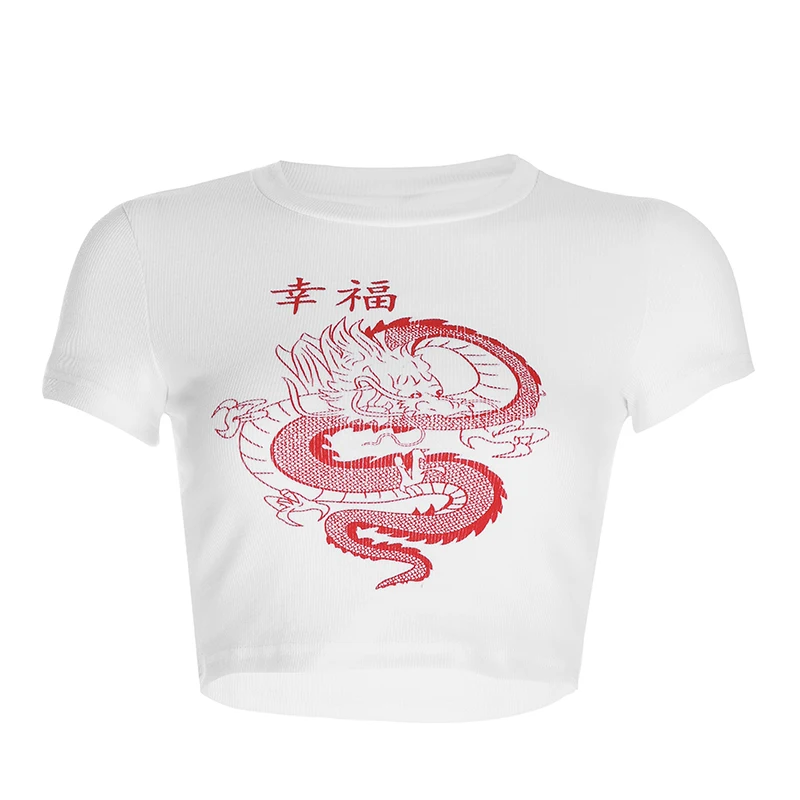 С рисунком дракона белый Для женщин s футболки Повседневное одноцветное китайской Стиль футболка Для женщин Harajuku короткий рукав Футболка Т...