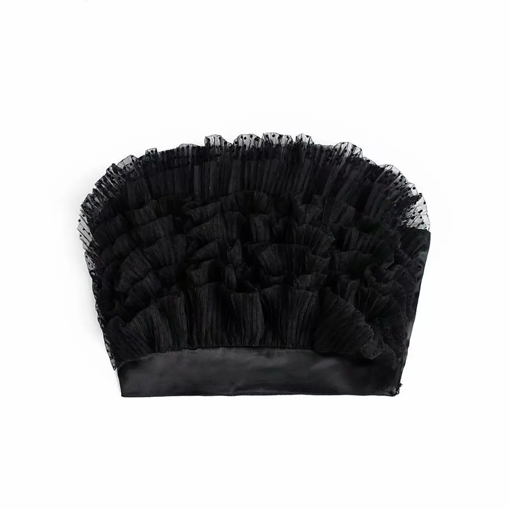 Новые женские каскадные оборки без бретелек Короткие сетчатые кроп-топы Женская шикарная уличная одежда с боковой молнией на спине эластичная одежда LS6333
