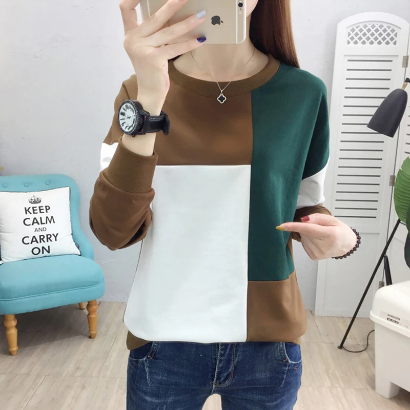 Футболка женская контрастная цветная клетчатая рубашка с длинным рукавом Женская 2020 новая осенняя одежда свободный женский топ свободного покроя размера плюс футболка Femme