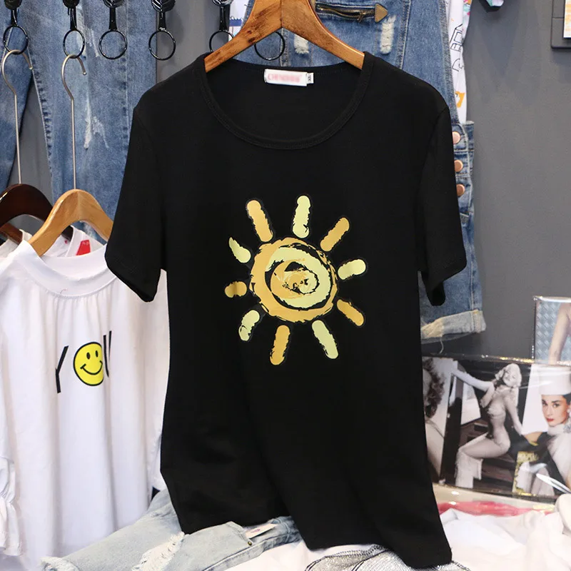 Летняя Новинка 2020 года, футболки для девочек в стиле Харадзюку, футболки для студентов, Корейская свободная футболка с короткими рукавами и рисунком, женская одежда