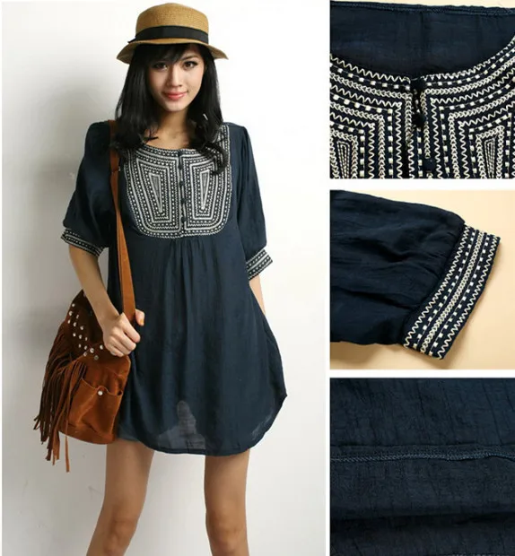 Новинка 2019 года Бесплатная доставка Винтаж 70 s мексиканская Этническая Вышивка Boho футболка хиппи Топы корректирующие L плюс размеры женская...