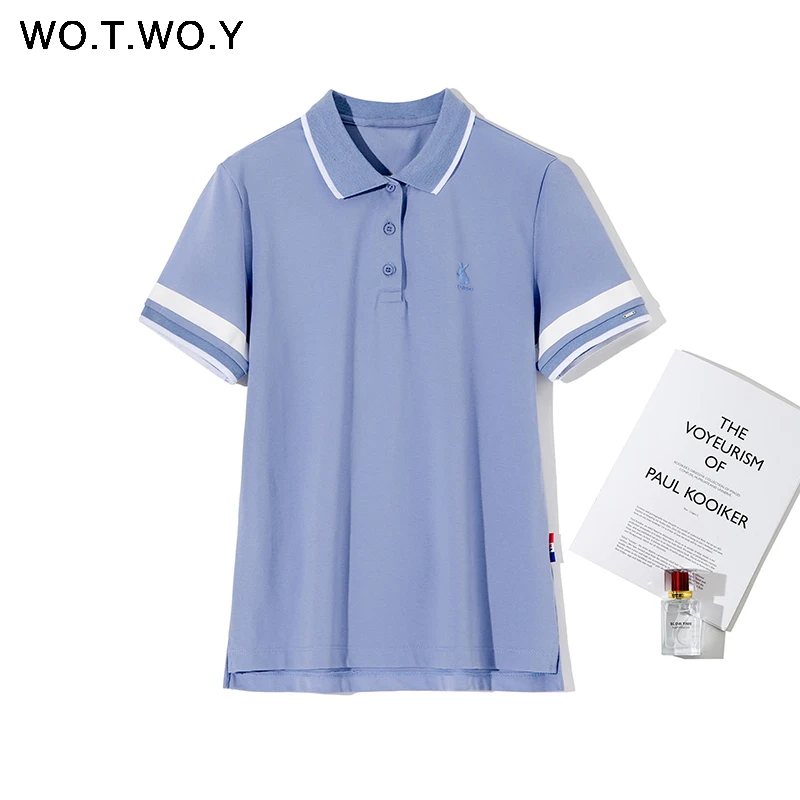 WOTWOY High Quality Plus Size Rabit Print Polo Shirts Women 2020 Spring Casual Short Sleeve Cotton Polo Tops Female Black Button