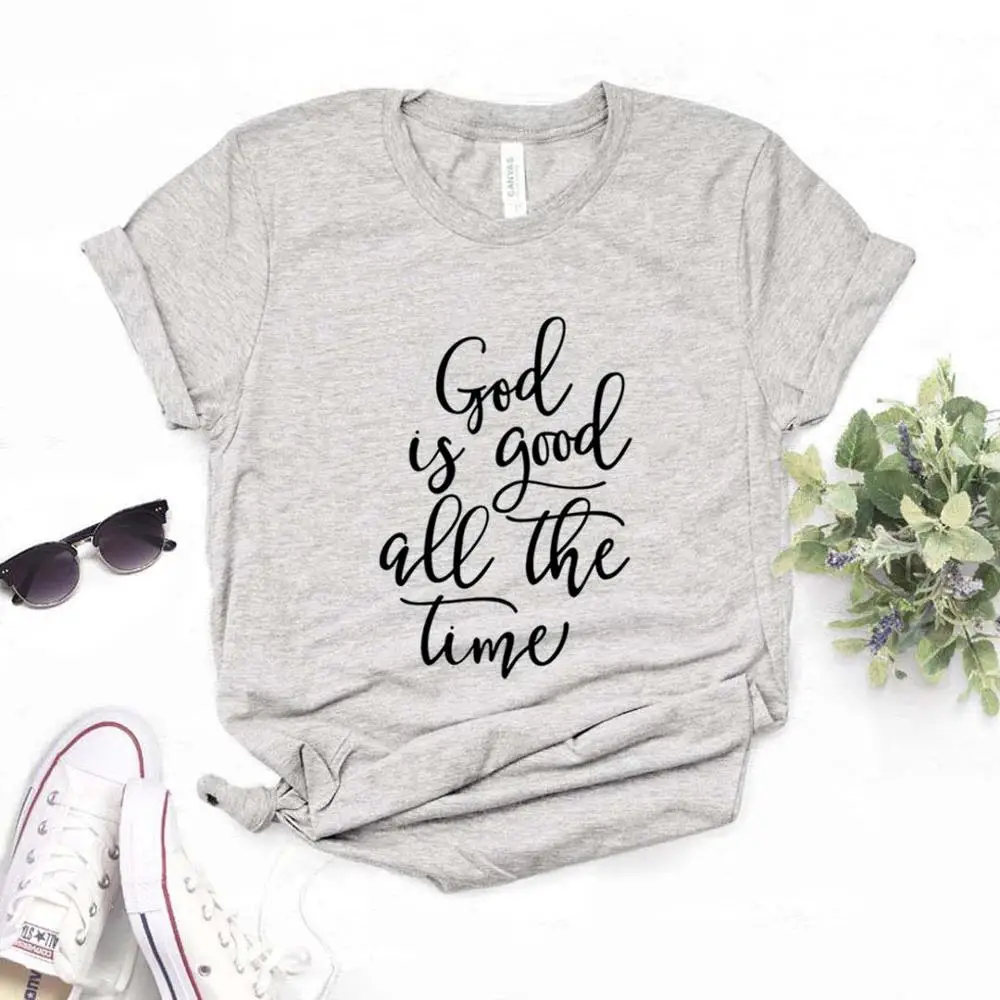 God is Good all the Time, женская футболка с принтом, смешные изделия из хлопка, футболка, подарок для леди Юн, топ, футболка для девочек, 6 цветов, Прямая...