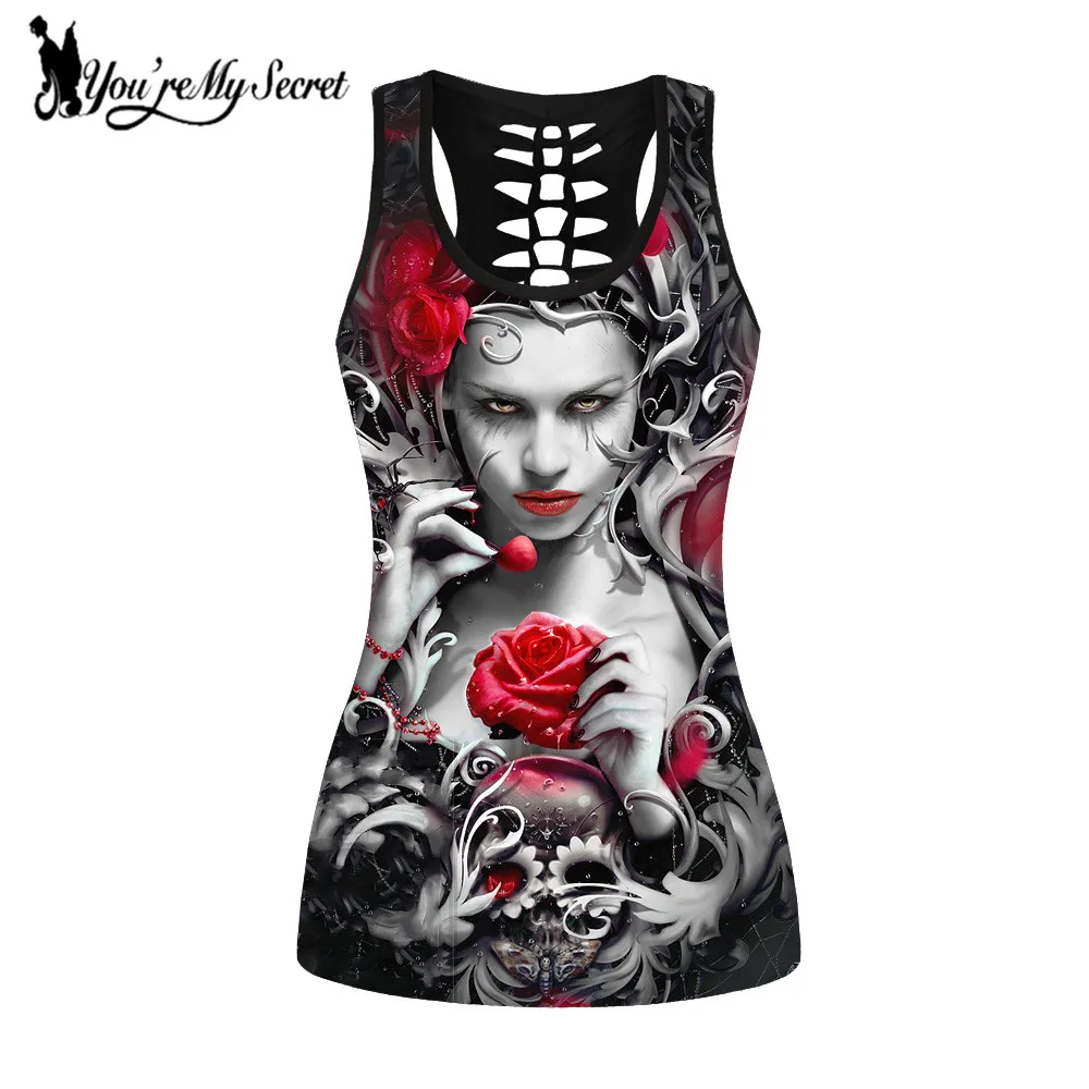 [You're My Secret] готический топ на бретелях, женская сексуальная майка с принтом в виде маски банши и розы, топы с вырезами в виде черепа, топ без рукавов в стиле панк размера плюс