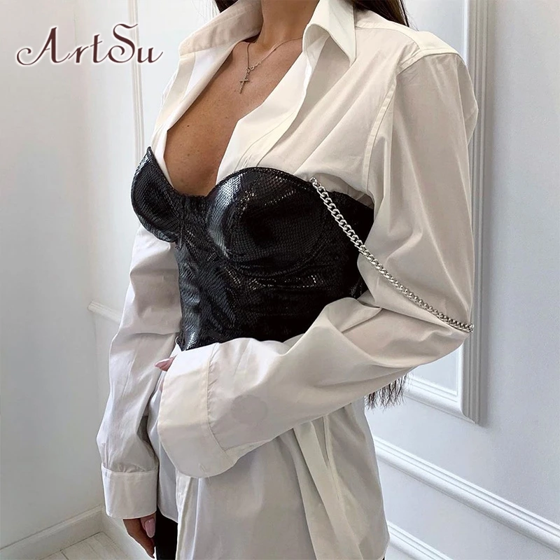 Арцу цепь из искусственной кожи укороченный топ черный с открытой спиной без рукавов Панк с открытыми плечами Топы для женщин Femme Сексуальн...
