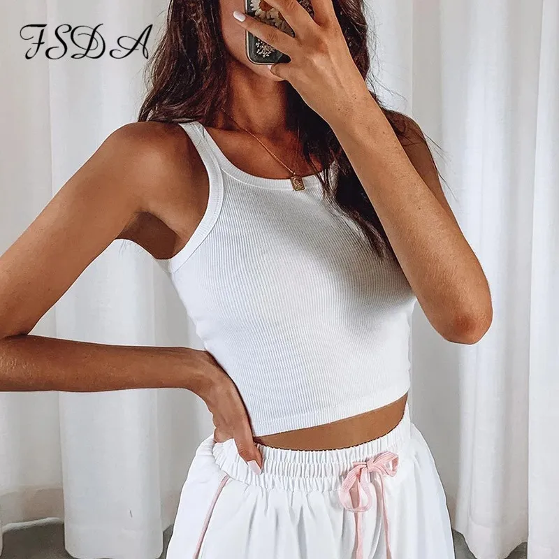 Женский ТРИКОТАЖНЫЙ УКОРОЧЕННЫЙ ТОП FSDA, черный топ без рукавов с открытыми плечами, лето 2020