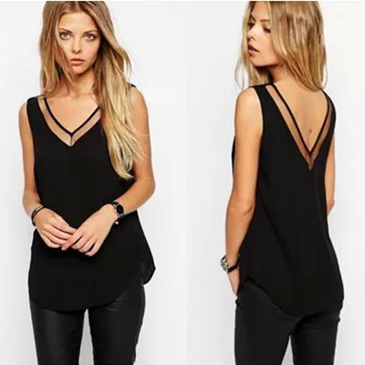 Лидер продаж майка Поступление сезона 2015 г. Летний стиль майка черный/белый Sexy шифон Топы корректирующие Повседневное Для женщин блузка без...