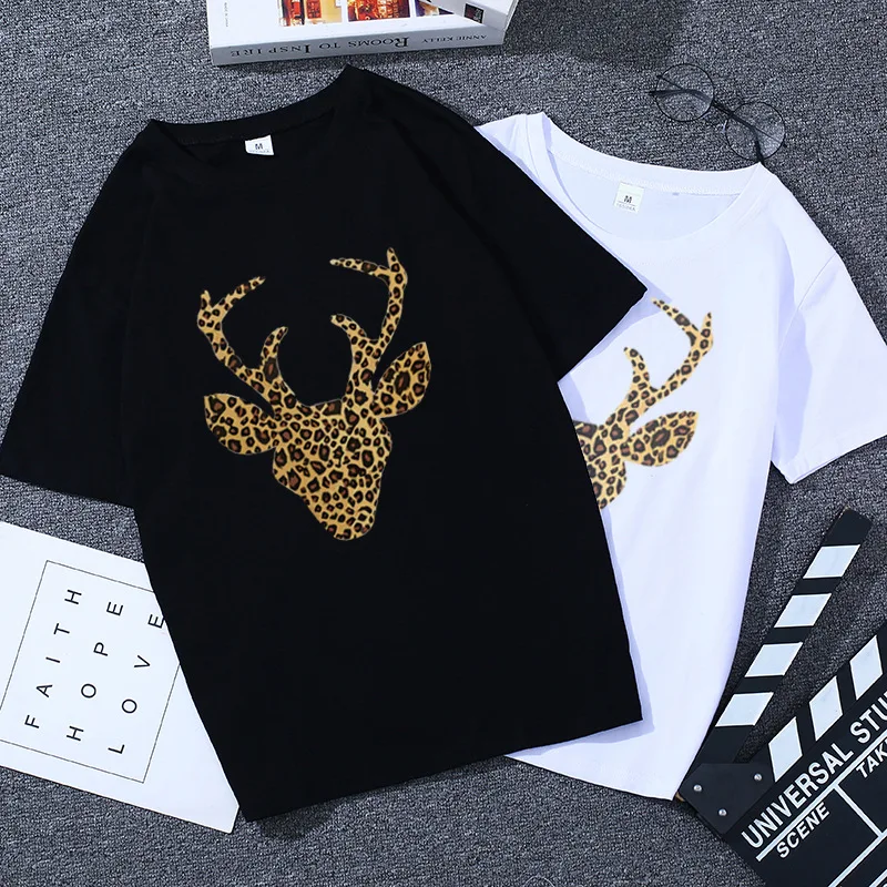 Женские топы, летняя футболка 2020, женские футболки с круглым вырезом и коротким рукавом, одежда для девочек, Прямая поставка, футболки, черные, белые рубашки с оленем