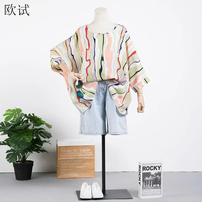 Размера плюс, шифоновая полосатая футболка, больше размера, женские топы, 5XL, 6XL, женские футболки s, 2020, летняя женская футболка с рукавом летучая мышь