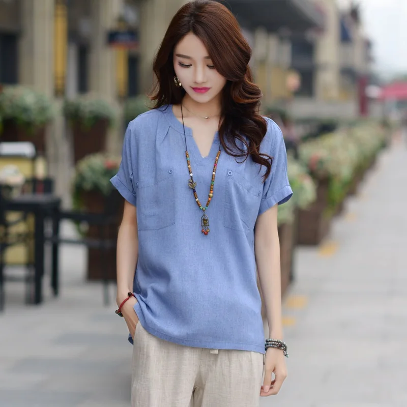 Новинка 2020, футболка с коротким рукавом, летняя женская Свободная футболка размера плюс, однотонные универсальные льняные футболки S-3XL
