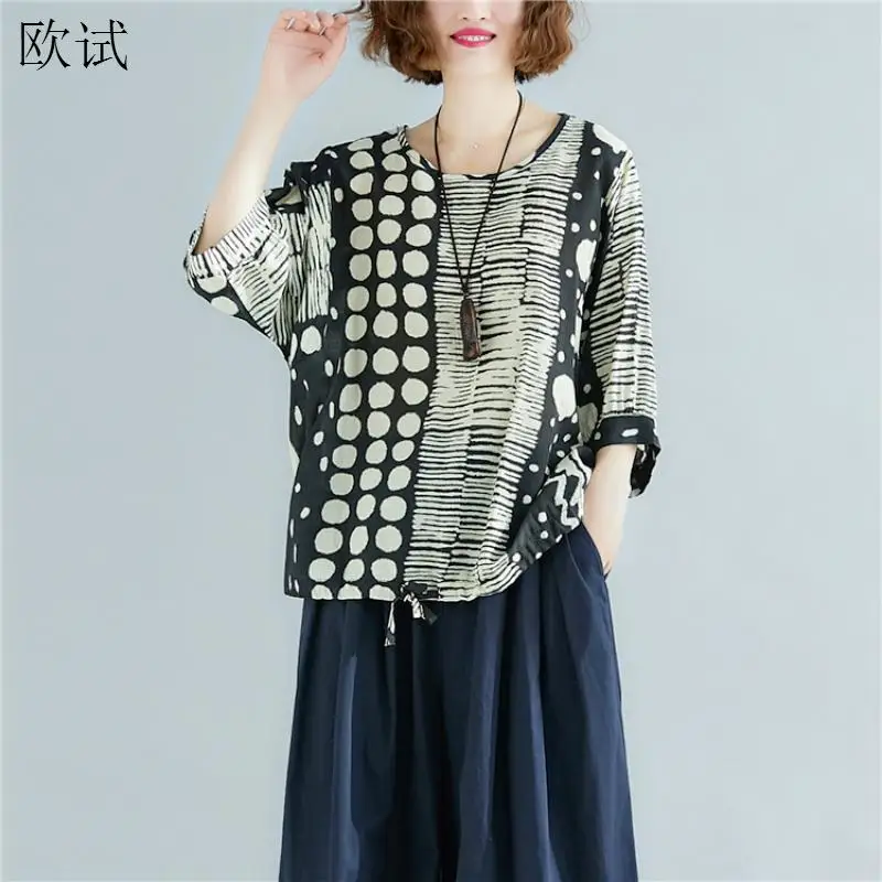 Футболки размера плюс в полоску, в горошек, женские летние топы, футболки 2020, Повседневная футболка, Женская хлопковая льняная футболка, тонкая, 4XL, уличная одежда